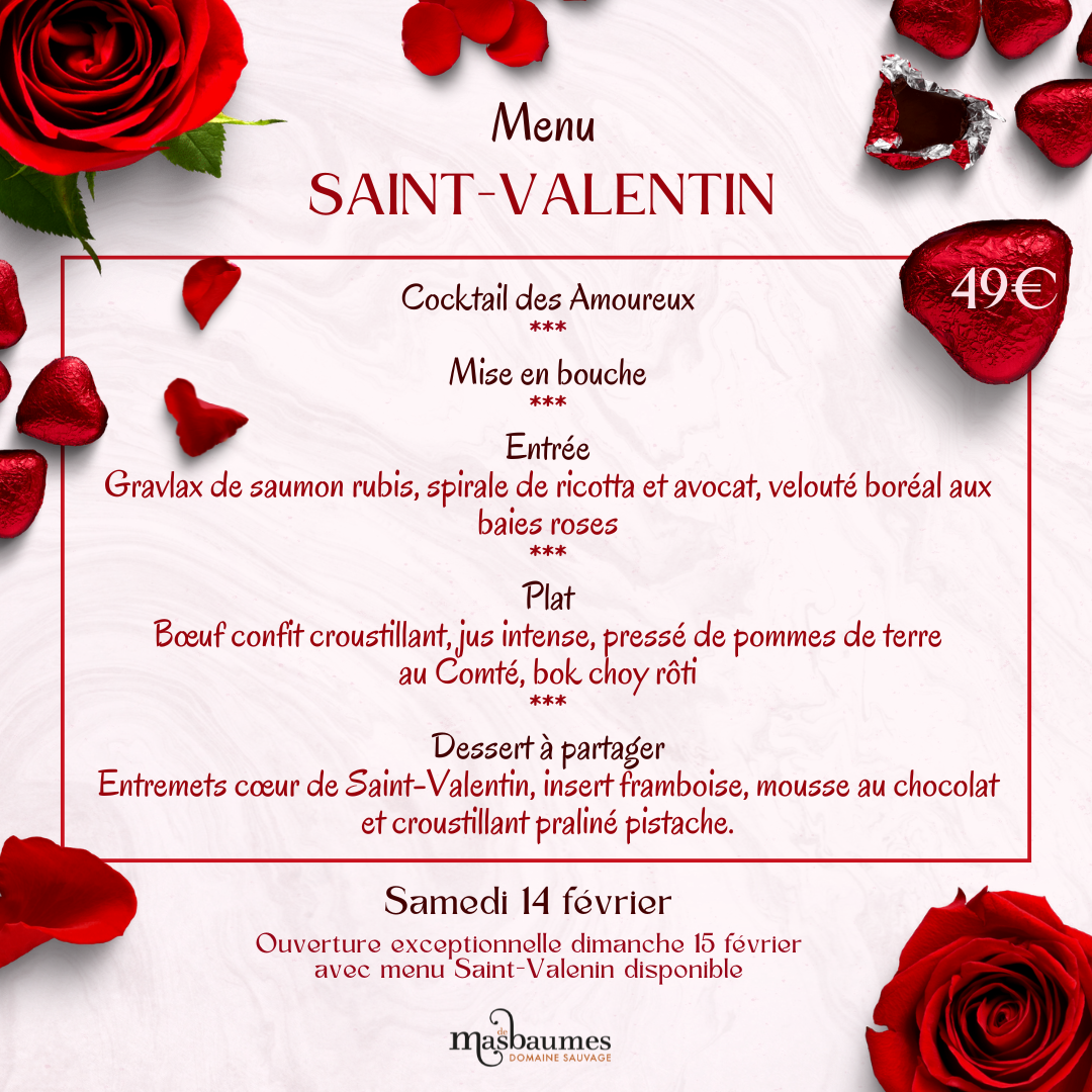 Nous vous proposons un menu spéciale amoureux du vendredi 13 au soir au dimanche 15 à midi.